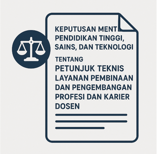 Untuk kelancaran dan kepastian layanan pembinaan dan pengembangan profesi karier dosen, perlu dilakukan penyesuaian dengan menerbitkan KEPUTUSAN MENTERI PENDIDIKAN TINGGI, SAINS, DAN TEKNOLOGI TENTANG PETUNJUK TEKNIS LAYANAN PEMBINAAN DAN PENGEMBANGAN PROFESI DAN KARIER DOSEN Nomor 63/M/Kep/2025.